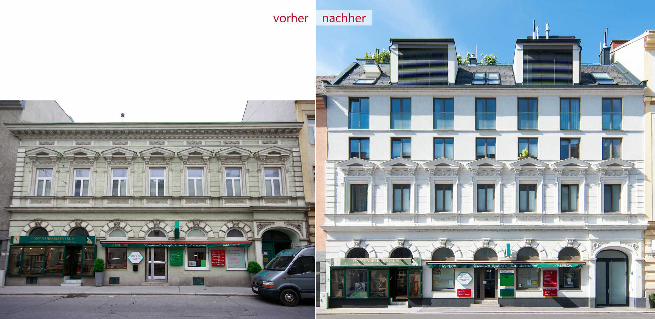 Alt trifft neu – durch moderne Aufstockung einer Liegenschaft mit aufwändig gegliederter Fassade, wurde ein spannendes, neues Fassadenbild geschaffen. Im Inneren besticht das Objekt durch moderne Grundrisse und Haustechnik.